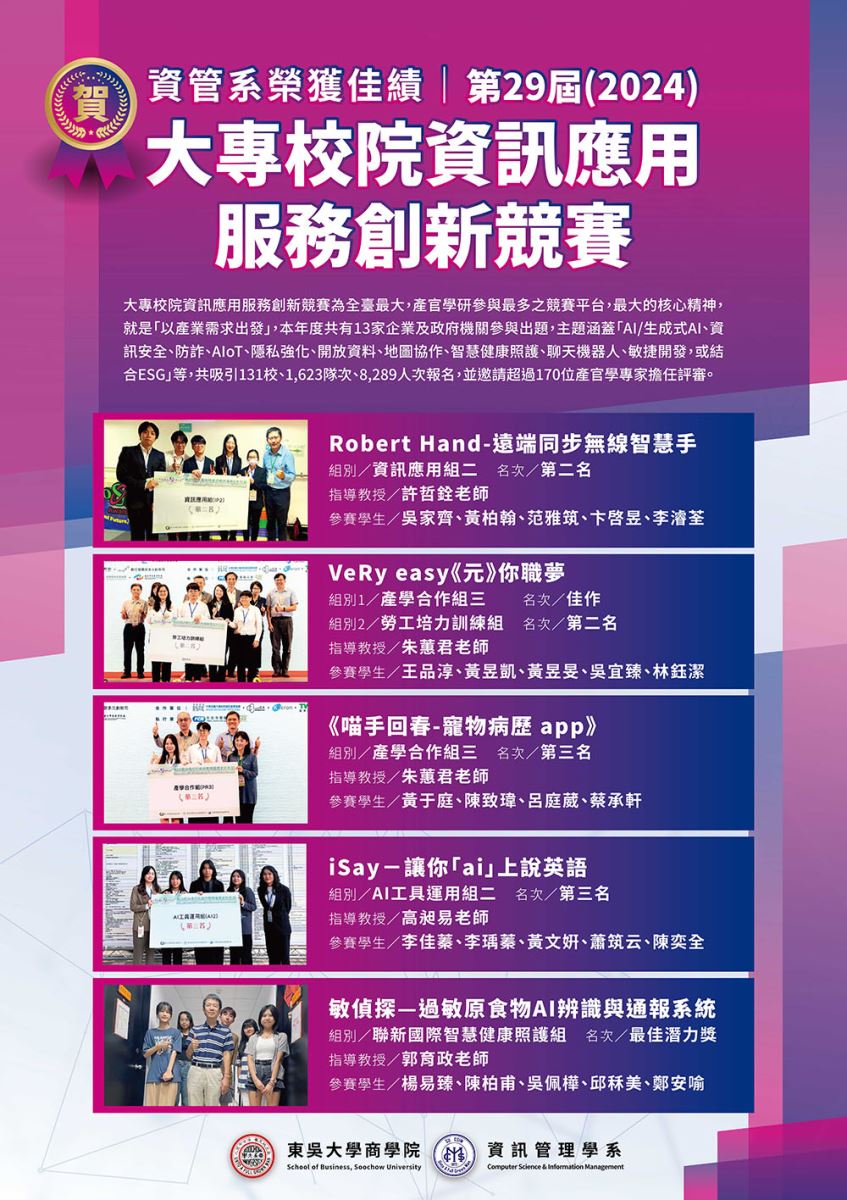 賀!2024大專校院資訊應用服務創新競賽榮獲佳績