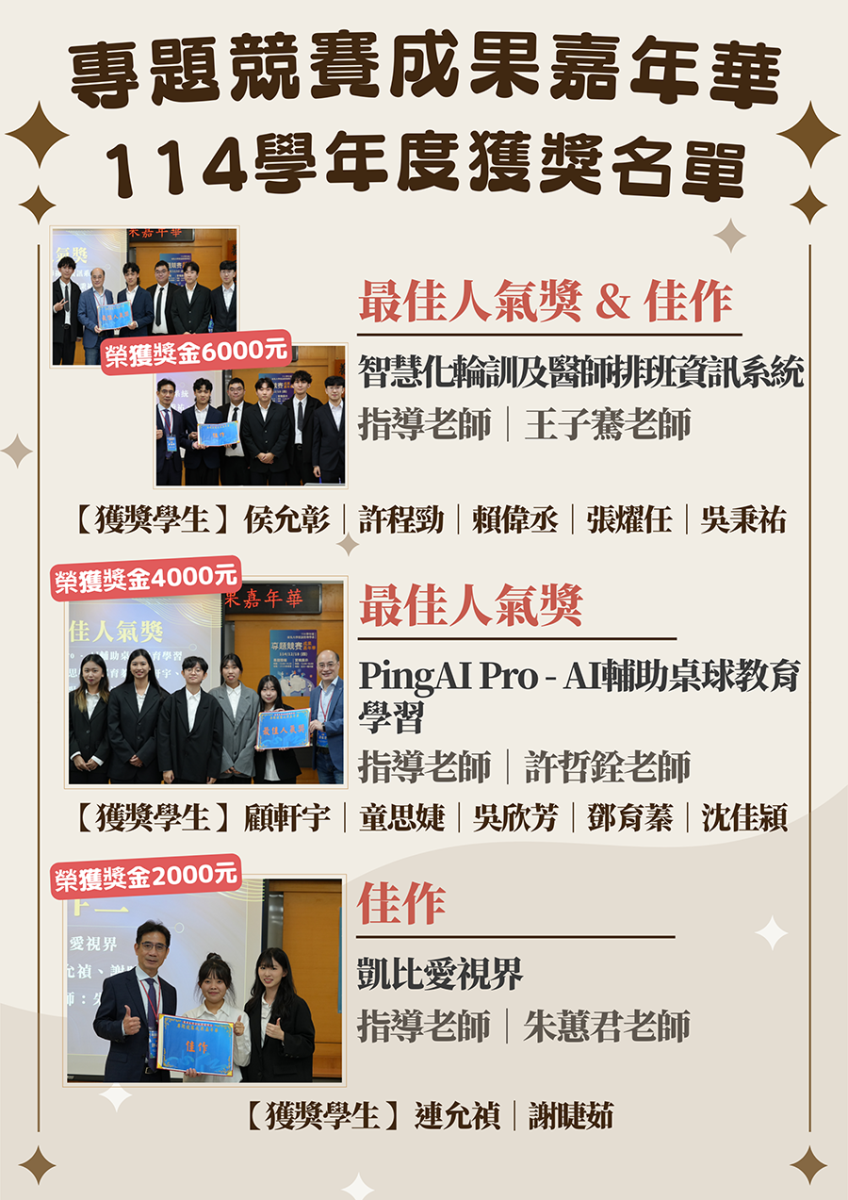 賀!114學年度專題競賽成果嘉年華獲獎名單!